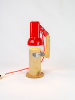 Besonders markant: das anspringende Rot ihres Lampenschirms und die feine Lochzeichnung an der Oberkante – kleine Gesten, die Charakter zeigen, ohne sich aufzudrängen.